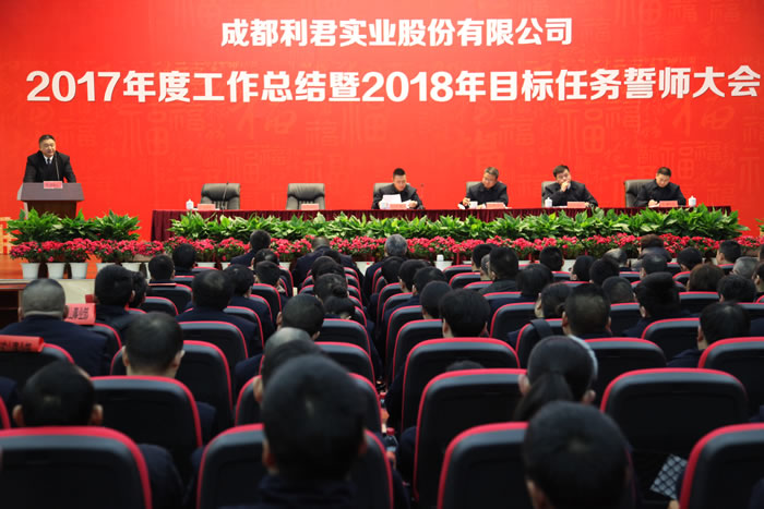 2018年2月9日,成都利君實業(yè)股份有限公司在成都市龍泉驛區(qū)利君科技公司員工禮堂組織召開了2017年度工作總結(jié)暨2018年目標(biāo)任務(wù)誓師大會。