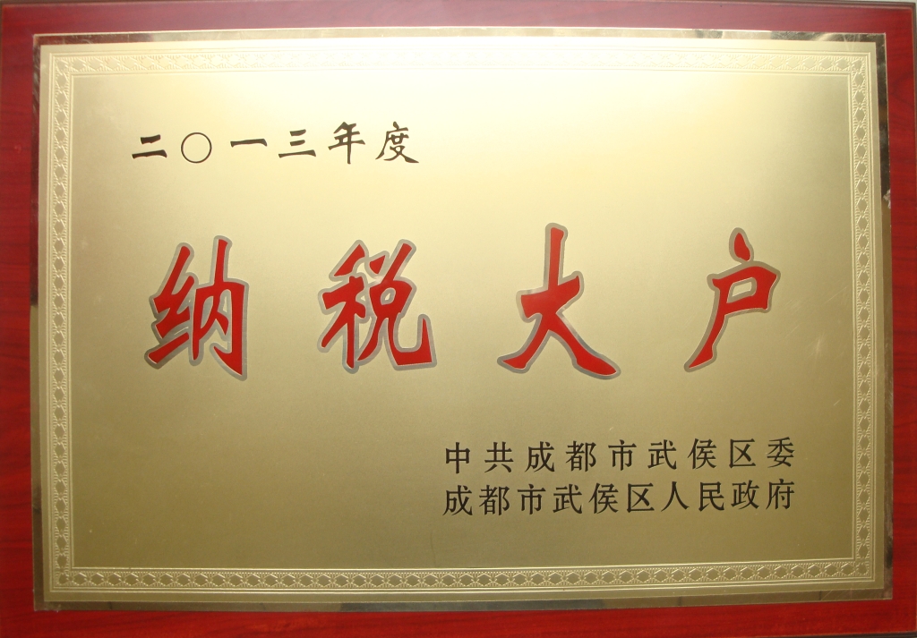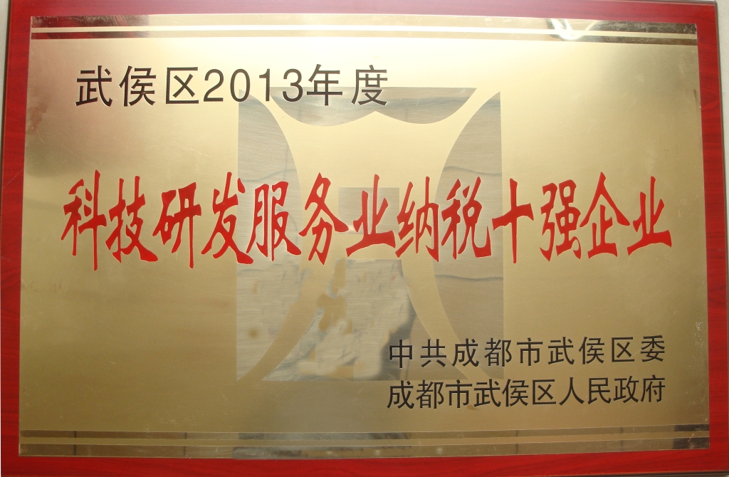 2014年3月21日武侯區(qū)召開了2013年度納稅大戶表彰大會。公司榮獲了“科技研發(fā)服務(wù)業(yè)納稅十強(qiáng)企業(yè)”、“納稅過億元企業(yè)”、“納稅大戶”三項殊榮。