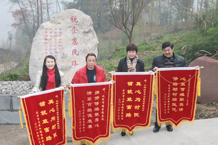 竣工儀式上,馬家社區(qū)村委向市局和三家捐贈(zèng)企業(yè)回贈(zèng)了錦旗,文井江鎮(zhèn)鎮(zhèn)長(zhǎng)廖強(qiáng),代表鎮(zhèn)黨委、政府致了答謝講話。曾組長(zhǎng)代表市局和三家捐贈(zèng)企業(yè),希望馬家社區(qū)切實(shí)把“稅企惠民路”養(yǎng)護(hù)好、使用好,切實(shí)讓“稅企惠民路”變成社區(qū)群眾實(shí)現(xiàn)黨的十八大提出的“建成小康社會(huì)”宏偉目標(biāo)的致富路。